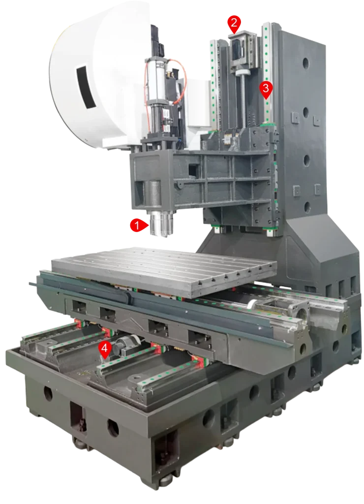 تتميز هذه الفريزة بقدرتها العالية على التحمل مع طاولة عمل قوية تتحمل حتى 1500 كجم، وسرعة دوران عالية حتى 12000 rpm، مع إمكانية اختيار سبيندل BT-40 أو BT-50 لتلبية احتياجات القطع الخفيف أو الثقيل.