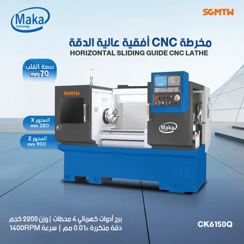 تقدّم شركة مكة تكنولوجي في مصر مخرطة CNC أفقية CK6150Q المصمّمة لتلبية احتياجات القطاعات الصناعية الثقيلة والمتوسطة التي تتطلب دقة عالية وأداء ثابت في عمليات الخراطة المعقدة.