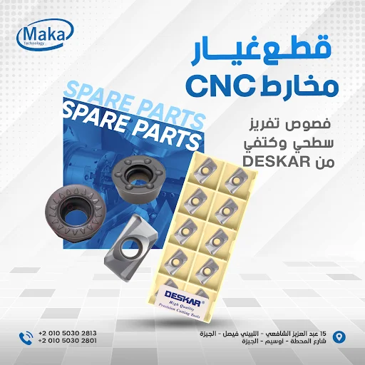 توفر شركة مكة تكنولوجي لماكينات CNC مجموعة متكاملة من فصوص التفريز CNC موديلات RDMT، RPMT، APMT من DESKAR، المصممة لتحقيق إنتاجية عالية وجودة سطح ممتازة في عمليات التفريز السطحي (Face Milling) والتفريز الكتفي (Shoulder Milling).